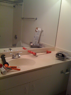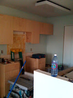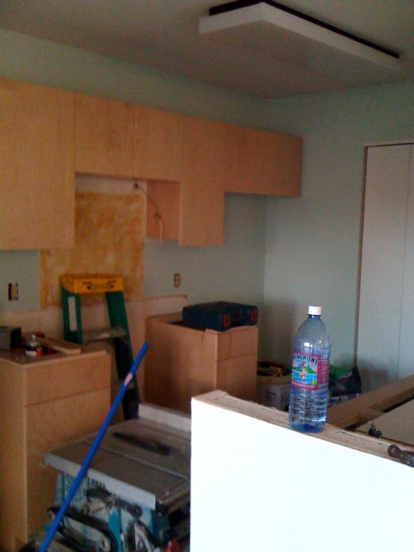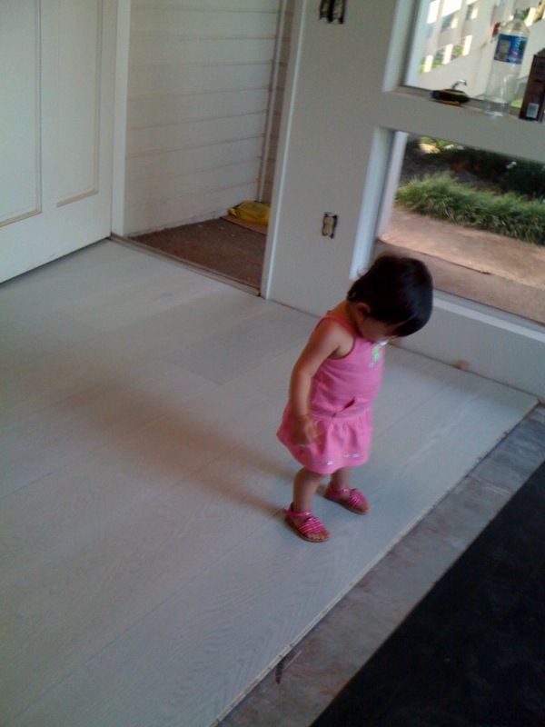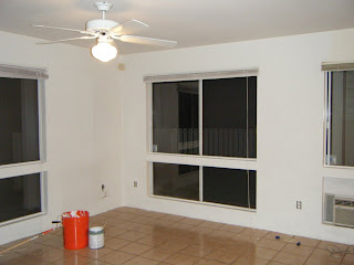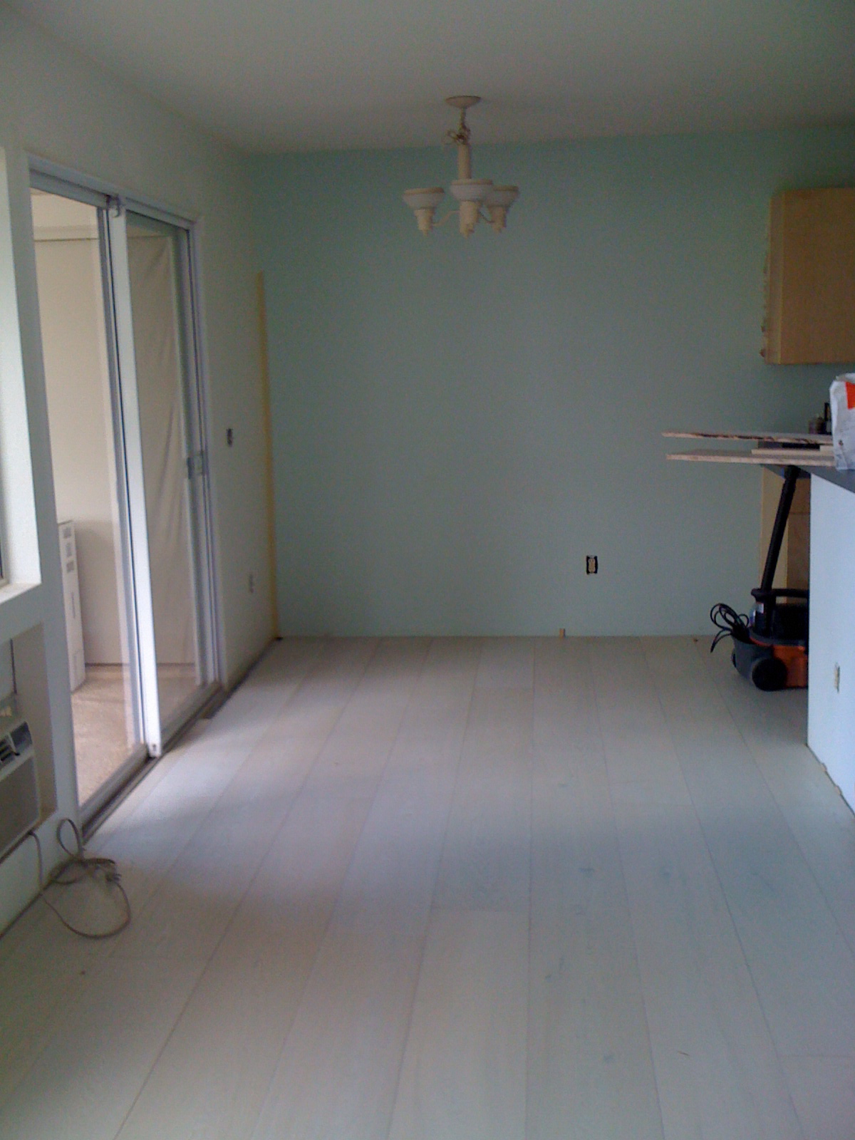 We chose Behr's 'Silver Leaf' for the living room area; it's hard to tell from the color sample & the terrible photo but, it actually has a very subtle blue tone to it which we love! It looks really crisp & light.