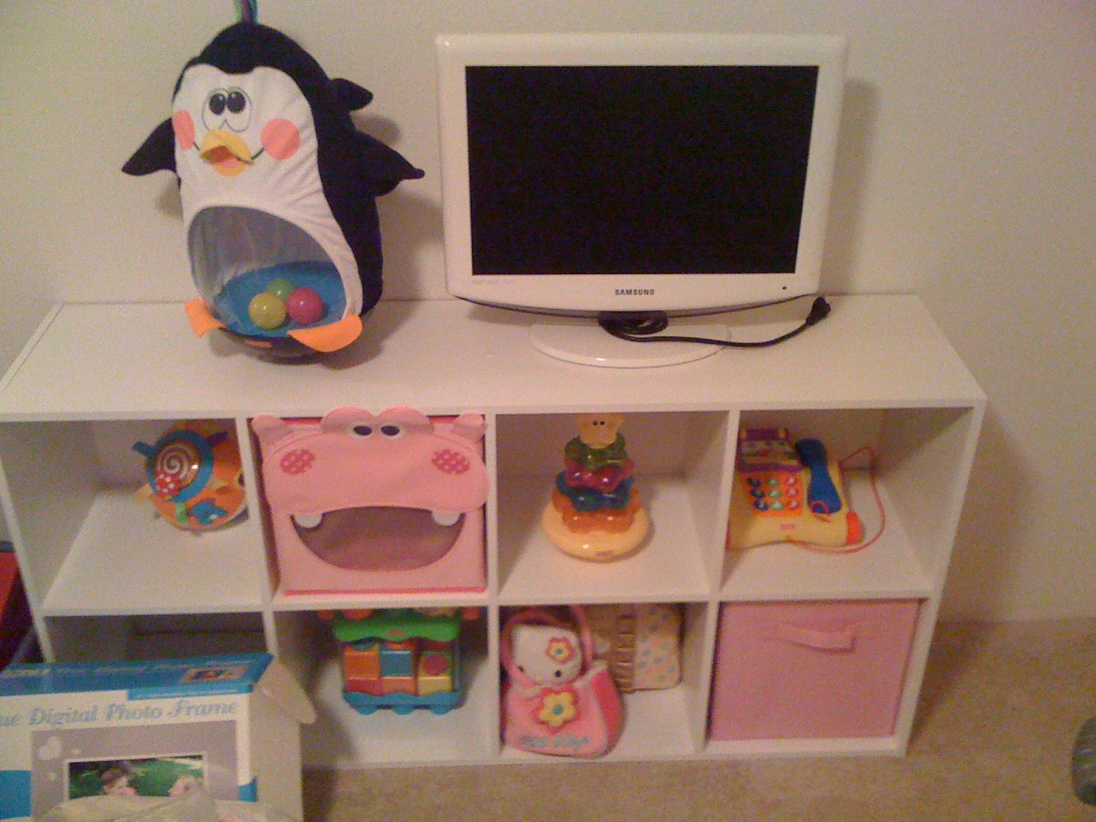 I had picked out a sunny yellow color for Zolie's room & really liked the way it looked on the wall, but, after looking through many, many photos of rooms, color schemes & such, we ended up getting 'Almost Pink'. It's a really light pink color with a hint of salmon.